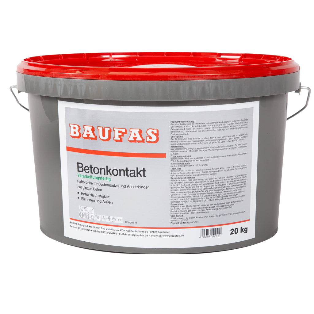 Das ungeöffnete Originalgebinde bleibt bei kühler, trockener und frostfreier Lagerung bis zu 18 Monate haltbar. Der Baufas Betonkontakt ist die ideale Lösung für eine sichere und dauerhafte Haftung von Putzen und sorgt für ein professionelles Ergebnis sowohl im Neubau als auch bei Renovierungsarbeiten.